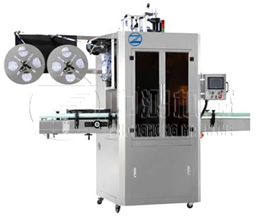 化妆品套标机/套膜机日化工厂PP方瓶圆椭圆瓶洗发水瓶套标机 沐浴露套标 洗手液瓶全自动套,女性洗液产品自动套标。取代常规不干胶贴标,节省标签成本提高产能